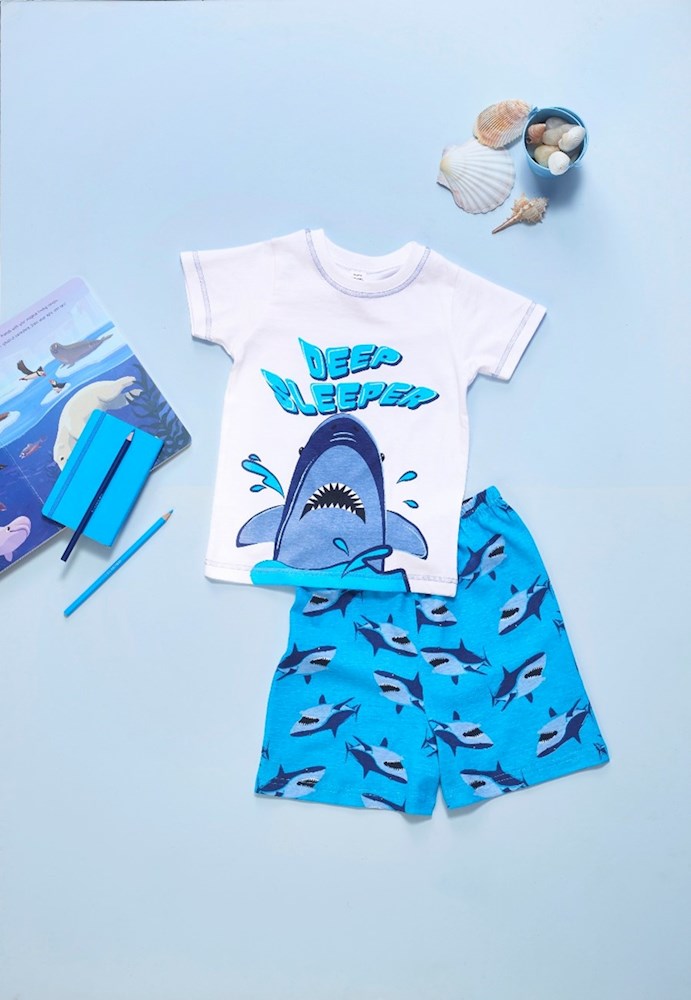 A po koupeli je zpravidla čas jít spát – i na to se můžou kluci těšit, když na ně čeká to správné pyžamo! Motiv žraloka na tričku i na kraťasech a oblíbená modrá barva v kombinaci s bílou je dárek, který určitě udělá radost.
